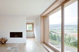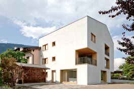 Tra i filari di mele della Val di Non, la demolizione e ricostruzione di un anonimo edificio residenziale degli anni 70 ha costituito l’occasione per recuperare il suo rapporto con il paesaggio e valorizzarne l’affaccio spettacolare sulla valle. La nuova architettura dal carattere formale estremamente semplificato, conserva proporzioni e volumetria originarie. Il linguaggio adottato reinterpreta i caratteri essenziali della tradizione alpina: corpo monolitico e compatto, intonaco bianco a finitura delle facciate, legno come naturale cornice delle aperture. Uniche eccezioni al vernacolo locale sono il contenimento della cornice di gronda all’interno delle murature perimetrali e la composizione libera delle aperture. I prospetti giocano, infatti, con la giustapposizione delle finestre, collocate in relazione ai diversi ambienti che sono chiamate a illuminare. La semplificazione dell’esterno dell’edificio si confronta con la ricchezza degli spazi interni, articolati attorno ad un monumentale vano scale. Collocato in posizione centrale, esso scandisce i diversi ambiti della casa attraverso rampe sovrapposte strette in un’intercapedine a doppia altezza. I tagli dei solai dilatano inaspettatamente lo spazio in senso verticale moltiplicando i traguardi visivi fra gli ambienti.